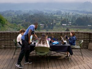 Though gorilla trekking is restricted to travelers age 15 and older, Wilderness Bisate Reserve ensures younger explorers are not left out. During our trek, our children remained at the lodge under the care of the warm staff. Their day was filled with creative and educational adventures: searching for chameleons on a guided walk, planting trees in the reforestation project, painting alongside the in-house artist and exploring the herb garden. It wasn’t simply childcare—it was a chance for them to engage with Rwanda’s ecological and cultural heritage in an age-appropriate way.